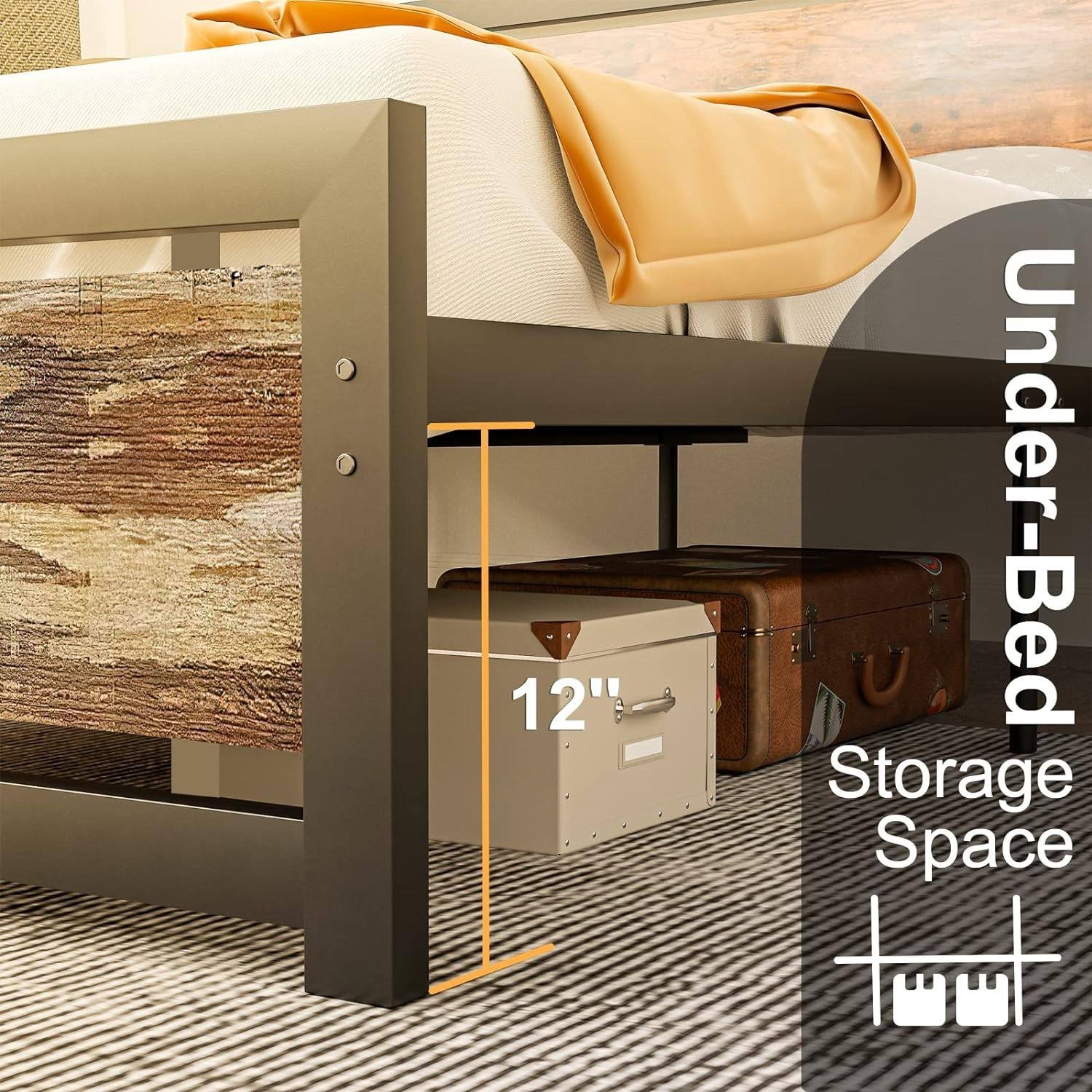 • Full size Industrial Platform Bed Frame with Wood Panel Headboard Footboard