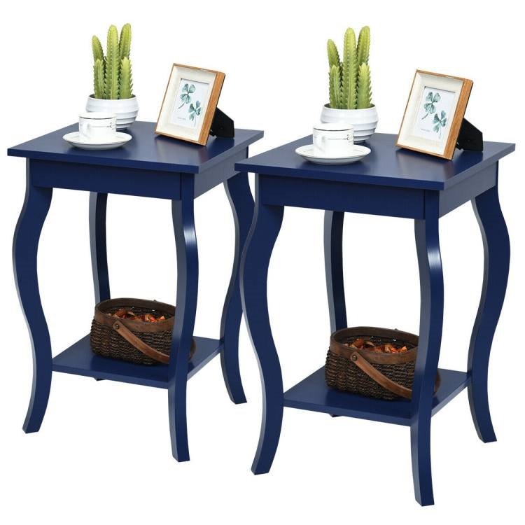 Stylish Nightstand End Table in Dark Blue Wood Finish - Set of 2